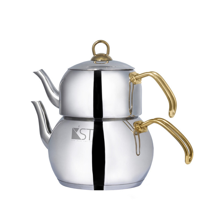 کتری و قوری لوله دار کی اس تی کد :2026 جنس بدنه :استیل ضد زنگ جنس قوری: استیل جنس دسته : استیل حجم کتری: 2.5 لیتر حجم قوری: 1.3 لیتر رنگ دسته :یراق طلایی جنس کفه : چدن