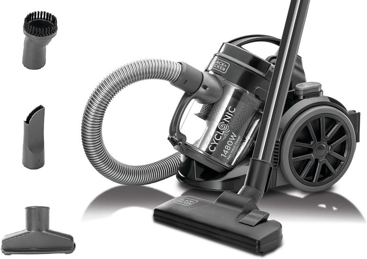 جارو برقی بدون کیسه بلک اند دکر مدل vm1480 با داشتن موتور ۱۵۰۰ وات و فرایند فیلتراسیون ۶ مرحله ای مولتی سیلیکون می باشد.این دستگاه دارای کابل برق ۵ متری جمع شونده و شلنگ ۱.۵ متری ۳۶۰ درجه می باشد که راحتی را در هنگام جارو کردم بهمراه می آورد.فیلتر قابل شستشو از دیگر ویژگی های مطلوب این جارو برقی است.