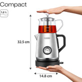 برند فلر با بکارگیری یک کتری استیل با ظرفیت 1.2 لیتری به شما امکان سرو چای و دمنوش های مختلف را میدهد.