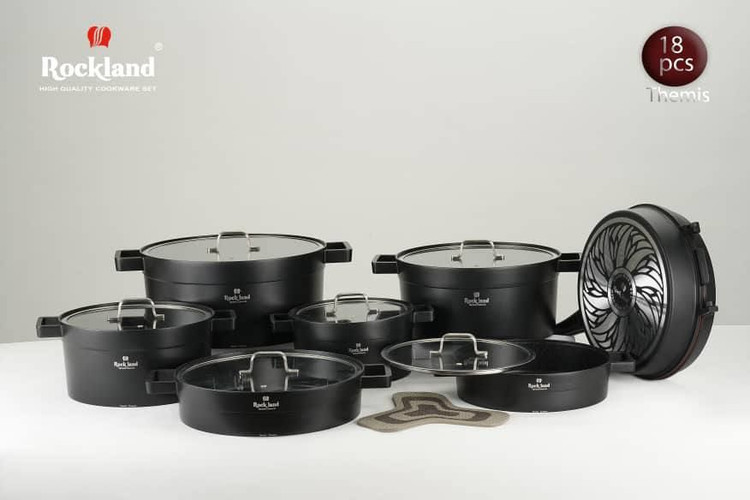 سرویس قابلمه راکلندمقاوم در برابر حرارت می باشد پوشش داخلی قابلمه گرانیت فوق العاده با کیفیت می باشد سرویس 21 پارچه شامل: قابلمه سایز 20 همراه درب قابلمه سایز 24همراه درب قابلمه سایز 28همراه درب قابلمه سایز 32همراه درب تابه سایز 24همراه درب تابه سایز 28همراه درب تابه رژیمی گرد تابه مرغ همراه درب تابه ماهی زیر قابلمه ای