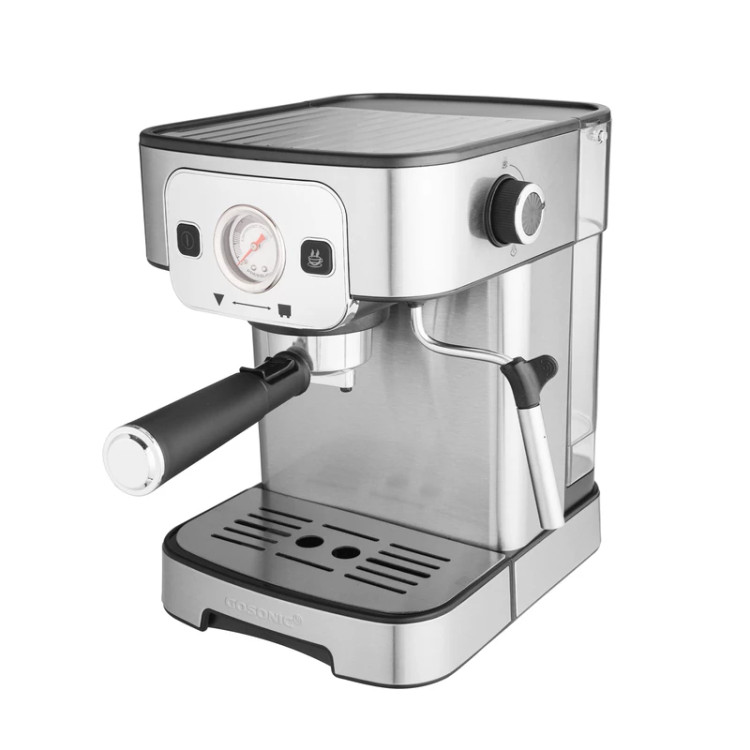 پمپ بخار حرفه ای ساخت شرکت ULKA ایتالیا با فشار بار بالا ۲۰ بار، مخزن آب جدشو با گنجایش ۱.۸ لیتر، توان مصرفی ۱۴۵۰ وات، صافی دو جداره از جنس استیل ۳۰۴، استیمر بخار استیل جهت تهیه فوم شیر کاپوچینو، لاته ، قهوه ترک و….، سینی گرم کن فنجان، دارای گیج که نشان دهنده کیفیت قهوه گیری شما از دستگاه میباشد، چرخش ۳۶۰ درجه استیمر بخار که براحتی بتوانید لیوان بزرگ را در قسمت خروجی بخار قرار دهید و نتیجه مطلوب را بگیرید،