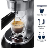 اسپرسو ساز دلونگی مدل EC685پرفروشترین اسپرسوساز برند محبوب دلونگی که بواسطهی زیبایی و جنس خوب بدنه برندی پذیرفتهشده در بین ایرانیان به حساب میآید. این قهوهساز خانگی با طراحی شکیل زیبایی آشپزخانهی شما را تضمین میکند. ابعاد کوچک 35x17x35، وزن 5 کیلوگرمی و جنس بدنه استیل با عمر بالا عامل اصلی محبوبیت این دستگاه دلونگی است. Delonghi ec685 دارای مخرن آب 1.1 لیتری در بخش پشتی است که برای تهیه چندین فنجان قهوه کافی میباشد. توان مصرفی اسپرسوساز دلونگی 1350 وات بوده و فشار بخار در این دستگاه 15 بار است که عدد قابل توجهی برای دستگاه خانگی محسوب میشود . شما علاوه بر اسپرسو میتوانید با کمک بازوی استخراج قهوه و بخار، به راحتی قهوه خود را با کرم صاف و نرمی بدست اورید همچنین لاته، کاپوچینو و آب جوش با این قهوه ساز تهیه کنید. در قسمت زیرین دستگاه سینه چکه گیر وجود دارد که هنگام ریزش مایع، قهوه یا آب، داخل این مخزن ریخته و از کثیف شدن کابینت یا میز شما جلوگیری میکند. این دستگاه دارای پنل گرمکننده در قسمت بالایی، صفحه نمایش LCD و حالت خاموشی خودکار است.
