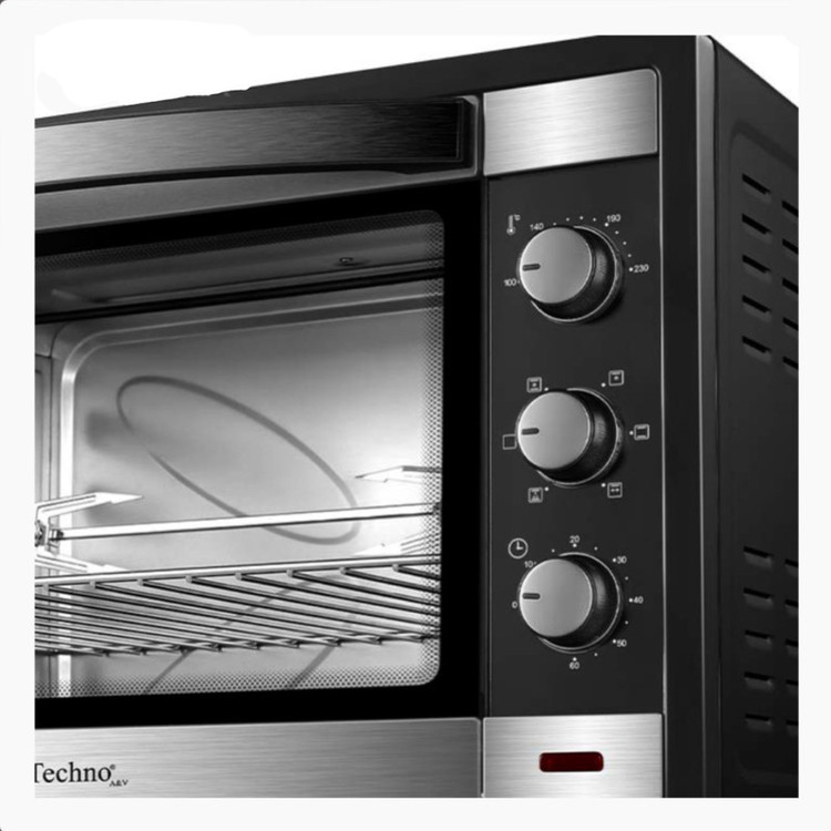 ظرفیت 65 لیتر دارای لامپ کابین و کانوکشن امکان حرارت دهی در 3 حالت بالا، پایین و هردو همزمان قابلیت تنظیم حرارت از 100 الی 250 درجه سانتیگراد تایمر 60 دقیقهای قدرت 2200 وات دارای سیستم جوجه گردان سینی جهت طبخ مواد غذایی المنت حرارتی استیل ضدزنگ دارای شیشه دوجداره